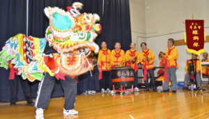Lion dance performed by the Chinese Senior Citizens Lion Dance Troupe, leading by drummer, Mr. Xibang Tang.